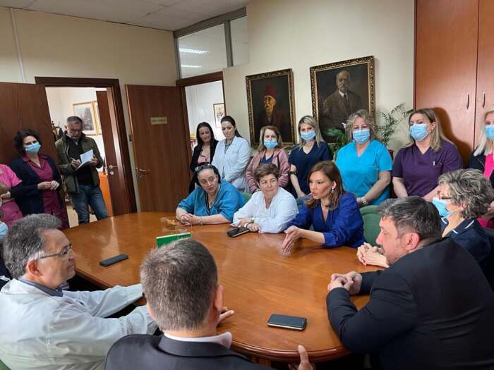 Στη συνέχεια η βουλευτής ξεναγήθηκε στις πτέρυγες της ορθοπεδικής κλινικής και της Μαιευτικής – Γυναικολογικής Κλινικής που βρίσκονται υπό ανακατασκευή. Τέλος ενημερώθηκε για την ανάγκη της κτηριακής αναβάθμισης του μικροβιολογικού τμήματος.