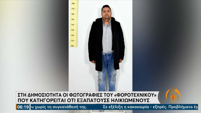 Άντρας 42 ετών, συνελήφθη από άνδρες της Ασφαλείας Πειραιά. Εξαπατούσε κυρίως ηλικιωμένους, παρουσιάζονταν μπροστά τους ως φοροτεχνικός. Επικαλούμενος πιθανό χρέος σε εκκρεμότητα τους άρπαζε τα χρήματα και στη συνέχεια εξαφανίζονταν.