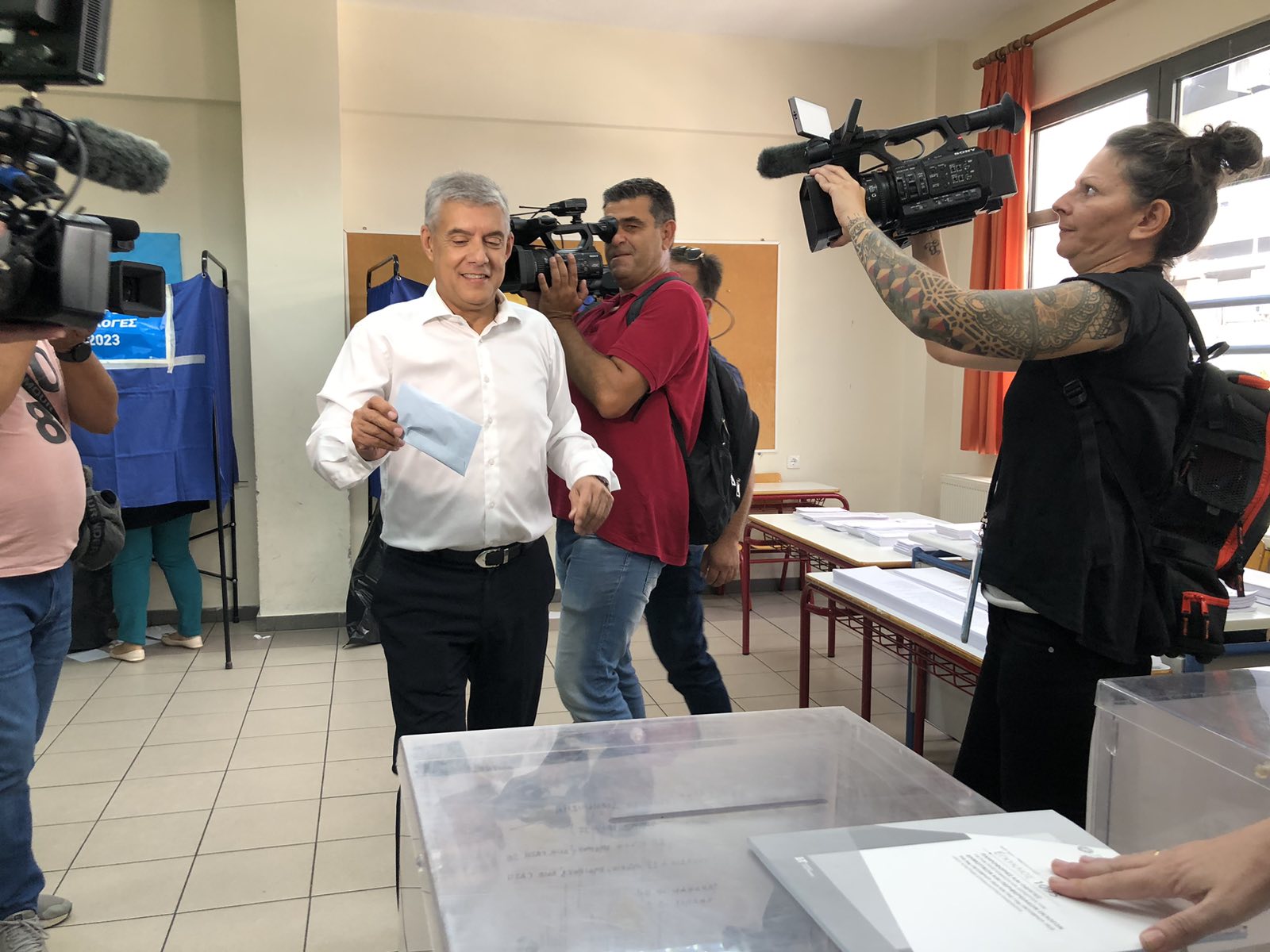 O Περιφερειάρχης Θεσσαλίας και εκ νέου υποψήφιος, Κώστας Αγοραστός άσκησε αργά το πρωί της Κυριακής το εκλογικό του δικαίωμα στο 4ο Δημοτικό Σχολείο Λάρισας.