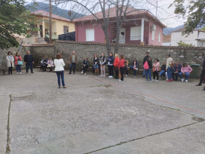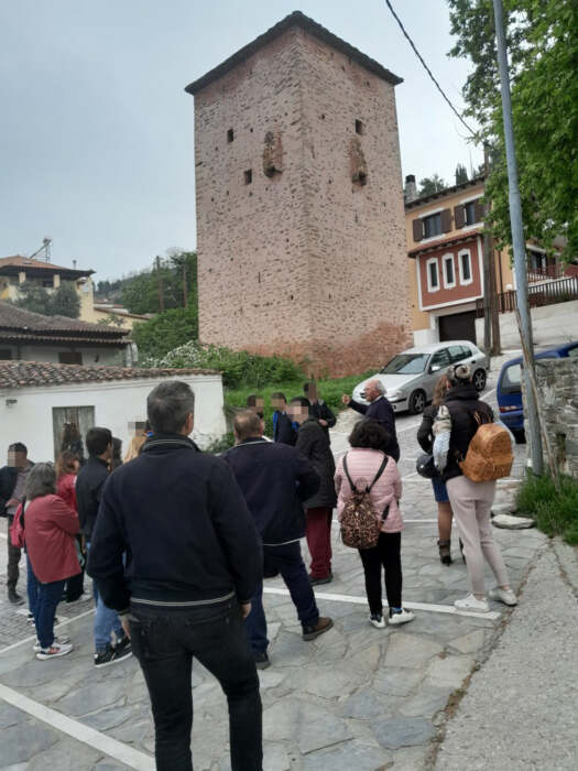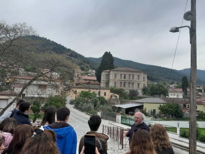 Στη συνέχεια έγινε ξενάγηση στην ιστορική-πολιτιστική διαδρομή: από την κεντρική πλατεία της Τσαριτσάνης, τον πύργο Μάμτζιου, την πλατεία Σοφίας Βέμπο, την εκκλησία της Παναγίας, την κρυψάνα στον προαύλιο χώρο της εκκλησίας, μέχρι την Οικονόμειο Σχολή. Εκεί μας υποδέχθηκε η διευθύντρια, το προσωπικό και οι μαθητές του Γυμνασίου-Λυκειακές Τάξεις Τσαριτσάνης και μας ενημέρωσαν για την παιδαγωγική και πολιτιστική ιστορική διαδρομή και αξία της σχολής. Η επίσκεψη έκλεισε με τους μαθητές να απολαμβάνουν την παραποτάμια διαδρομή έως τον χώρο αναψυχής στην Κρυόβρυση.