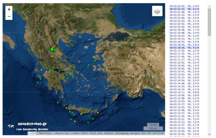 Νέα σεισμική δόνηση μεγέθους 4,2 βαθμών της κλίμακας Ρίχτερ έγιε αισθητός στην περιοχή της Ελασσόνας στις 21:48