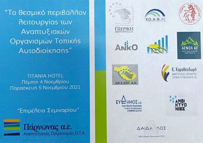 Με μεγάλη επιτυχία ολοκληρώθηκε το παραπάνω Εκπαιδευτικό Διήμερο στις 04 και 05 Νοεμβρίου στο ξενοδοχείο ΤΙΤΑΝΙΑ στην Αθήνα, με την συμμετοχή 45 στελεχών από 12 Αναπτυξιακούς Οργανισμούς, που το συνδιοργάνωσαν. Εξαιρετικοί νομικοί της χώρας από δικαστικούς σχηματισμούς (όπως το Νομικό Συμβούλιο του Κράτους), Ανεξάρτητες Αρχές (όπως η ΕΑΔΗΣΥ), ανώτατα στελέχη Διαχειριστικών Αρχών, Νομικοί, στελέχη της ΕΕΤΑΑ και στελέχη Αναπτυξιακών Οργανισμών, δημιούργησαν γι’ αυτό το σκοπό ένα πυρήνα γνώσης, τεχνογνωσίας και εμπειρίας σε σχέση με τον νέο θεσμό της Αυτοδιοίκησης.