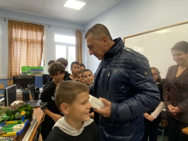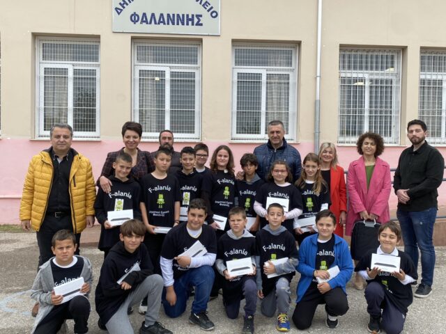 Μια έκπληξη περίμενε σήμερα τους μαθητές της ομάδας Ρομποτικής του σεισμόπληκτου δημοτικού σχολείου Φαλάνης καθώς ο Περιφερειάρχης Θεσσαλίας κ. Δημήτρης Κουρέτας συνοδευόμενος από την Χωρική Αντιπεριφερειάρχη Λάρισας κ.Μαρία Γαλλιού επισκέφτηκαν το σχολείο με τον κύριο Κουρέτα να δίνει στους μικρούς μαθητές δεκαπέντε τάμπλετ, όπως τους είχε υποσχεθεί για τις διακρίσεις τους, με τελευταία την κατάκτηση της δεύτερης θέσης στον Πανελλήνιο Διαγωνισμό Ρομποτικής με το έργο «Υδάτινες Στρατηγικές για την Θεσσαλία».