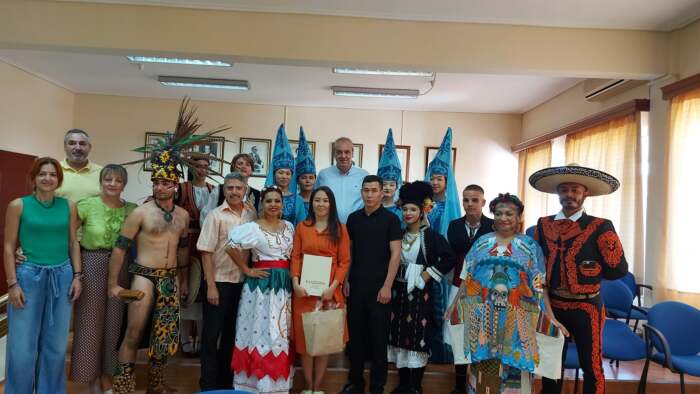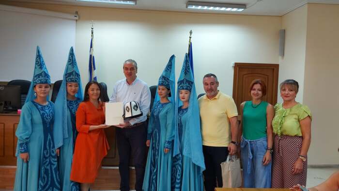 Ο Δήμαρχος Ελασσόνας κ. Ν. Γάτσας υποδέχτηκε σήμερα στο Δημαρχείο εκπροσώπους των αποστολών από το Μεξικό και το Κιργιστάν που συμμετέχουν στο 8ο Φεστιβάλ Παράδοσης, Πολιτισμού και Τεχνών «…στου Ολύμπου την αυλή», το οποίο διοργανώνει η Λαογραφική- Αρχαιολογική Εταιρεία Ελασσόνας με την στήριξη του Δήμου Ελασσόνας.