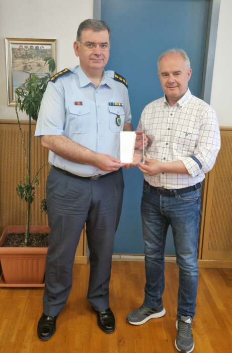 Ο κ. Μανώλης υποδέχτηκε στο δημαρχείο τον κ. Χαρακόπουλο και τον συνεχάρη για την προαγωγή και την τοποθέτηση του στην ηγεσία της διοίκησης της Αστυνομικής Διεύθυνσης Λάρισας και του ευχήθηκε δύναμη και επιτυχία στα νέα του καθήκοντα.