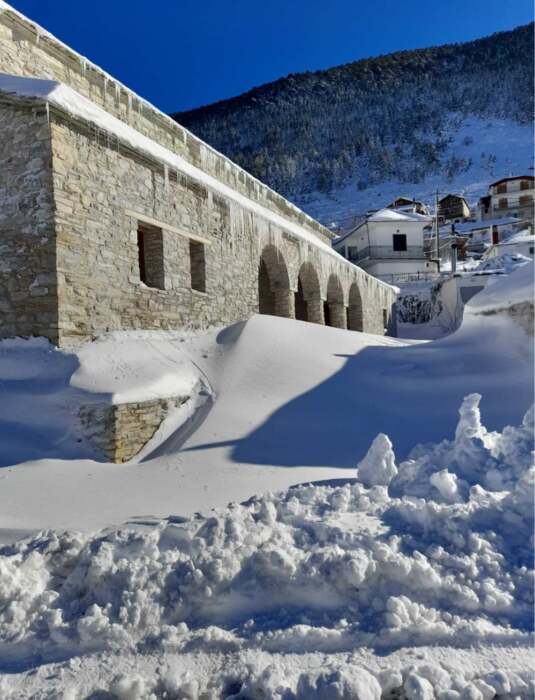 Το χιόνι που είχε πέσει τις προηγούμενες μέρες έγινε πάγος και ακόμη εντός της κοινότητας οι κάτοικοι δυσκολεύονται να μετακινηθούν.