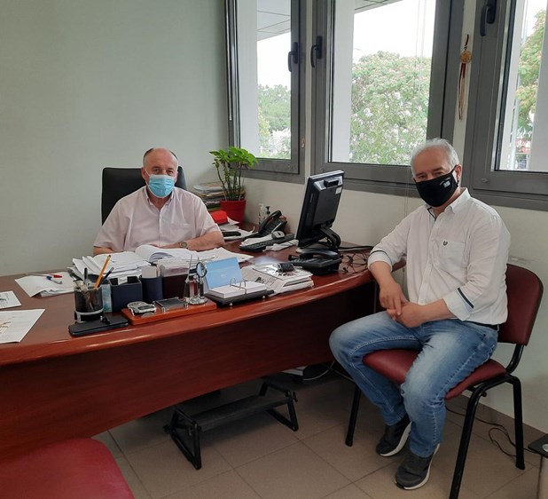 Τα γραφεία της Διεύθυνσης Αγροτικής Οικονομίας Π.Ε. Λάρισας της Περιφέρειας Θεσσαλίας και πιο συγκεκριμένα τον Διευθυντή κ. Παναγιώτη Καλφούντζο επισκέφθηκε ο Δήμαρχος Τεμπών κ. Γιώργος Μανώλης, προκειμένου να συζητήσουν για το πρόβλημα της ακαρπίας των ελαιοδέντρων του Δήμου Τεμπών, καθώς και για την πορεία των διαδικασιών του Προγράμματος Δακοκτονίας του τρέχοντος έτους.