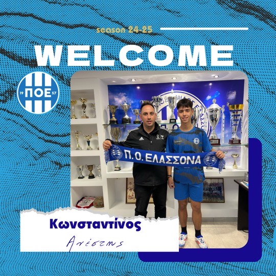 Το ΔΣ του Π.Ο.Ελασσόνας, ανακοινώνει την απόκτηση του ταλαντούχου αριστεροπόδαρου Κωνσταντίνου Ανέστη γεννηθείς το 2006 από την Κ19 του Λεβαδειακού. Τον καλωσορίζουμε στην οικογένεια του ΠΟΕ και του ευχόμαστε υγεία και πολλές επιτυχίες με την ομάδα μας.