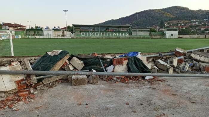 Ο τοίχος της ανατολικής πλευράς του γηπέδου έπεσε και ο δρόμος ήταν κλειστός. Επεσαν αρκετά δένδρα και κλαδιά και σημειώθηκαν αρκετές καταστροφές.