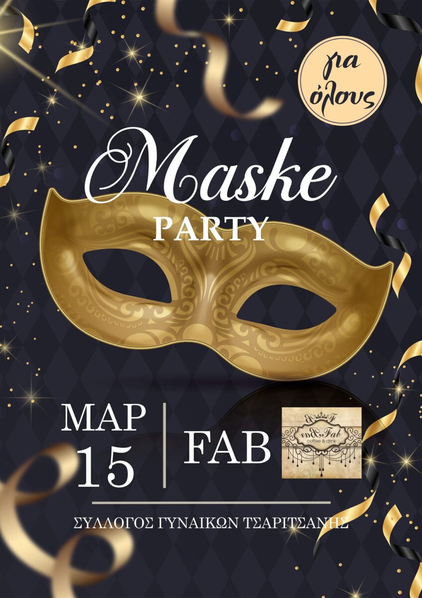 Στις 15 Μαρτίου, ο Σύλλογος θα κλείσει τις αποκριάτικες εκδηλώσεις του με το καθιερωμένο Πάρτυ Μασκέ, στο καφέ Fab.