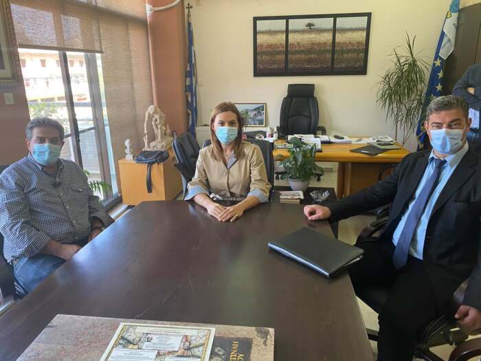 Στο Δημαρχείο Φαρσάλων η κα Μπίζιου πραγματοποίησε συνάντηση εργασίας με τον δήμαρχο κ. Μάκη Εσκίογλου, παρουσία του αντιπροέδρου του ΕΛΓΑ κ. Νίκου Δούκα. Η Λαρισαία βουλευτής ενημερώθηκε για την πρόοδο των εργασιών αποκατάστασης των ζημιών στις περιοχές που επλήγησαν από τον καταστροφικό κυκλώνα «Ιανό» και έδωσε έμφαση στην συμμόρφωση με το χρονοδιάγραμμα που έχει τεθεί από το κυβερνητικό κλιμάκιο, κατά τη διάρκεια της πρόσφατης επίσκεψης του στα Φάρσαλα.