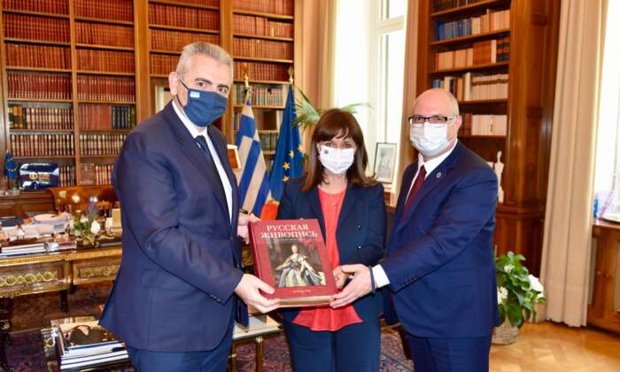 Ο Πρόεδρος της Γενικής Συνέλευσης της Δ.Σ.Ο. κ. Sergei Gavrilov εξέφρασε τα συγχαρητήριά του για τα 200 χρόνια από την επανάσταση του Ελληνικού λαού, τονίζοντας ότι κεντρικό πρόσωπο της ελληνικής ανεξαρτησίας ήταν ο Ιωάννης Καποδίστριας τον οποίο μαζί με άλλους πολλούς τιμά και ο ρωσικός λαός. Ο απελευθερωτικός αυτός αγώνας ήταν εν τέλει αγώνας όλων των ορθοδόξων λαών. Προς τιμή της επετείου η Δ.Σ.Ο. ετοιμάζει αναμνηστικό – τιμητικό τόμο με τίτλο “Η διορθόδοξη παρουσία του Αγίου Όρους στα χρόνια της οθωμανικής κυριαρχίας (1430-1912)”. Σκοπός αυτού του τόμου είναι να προσφέρει στον αναγνώστη μια ευσύνοπτη αλλά και ουσιαστική αναφορά για την παρουσία του Αγίου Όρους ως φάρου ανάμεσα στους ορθόδοξους χριστιανικούς λαούς και την ακτινοβολία του κατά την περίοδο της οθωμανικής κυριαρχίας. Τέλος, ενημέρωσε την κ. Σακελλαροπούλου για την προετοιμασία της Γενικής Συνέλευσης της Δ.Σ.Ο., τον προσεχή Ιούλιο στην Κρήτη, και για τις δράσεις της, οι οποίες αφορούν την ανάδειξη του ρόλου της Ορθοδοξίας, καθώς και την αρμονική διαθρησκειακή συνύπαρξη.