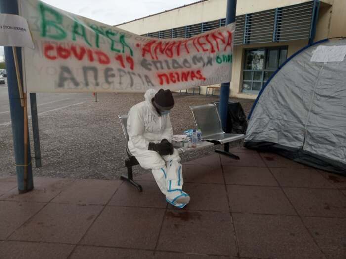 Έχοντας στήσει το αντίσκηνό του στην είσοδο του νοσοκομείου, δηλώνει πως δεν θα κάνει πισω, αν δεν προχωρήσει άμεσα η κυβέρνηση κάνοντας πράξη τα υπεσχημένα, δηλαδή την ένταξη των εργαζόμενων στα νοσοκομεία στα βαρε και ανθυγιινά, στη χορήγηση του το έκτατκτου βοηθήματος και στις άμεσες προσλήψεις για να στελεχώσουν το ΕΣΥ που δίνει τη μάχη στην πανδημία.