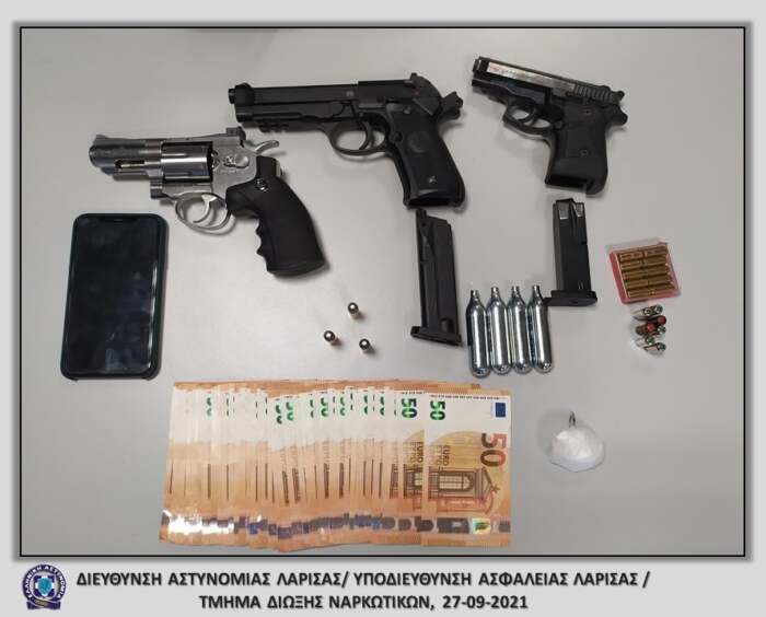 Συνελήφθη σήμερα (27-09-2021) το μεσημέρι στη Λάρισα, από αστυνομικούς του Τμήματος Δίωξης Ναρκωτικών της Υποδιεύθυνσης Ασφάλειας Λάρισας, ένας ημεδαπός, κατηγορούμενος για παραβάσεις των νομοθεσιών περί ναρκωτικών και περί όπλων.