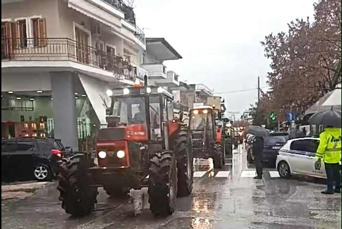 Ούτε η έντονη βροχόπτωση ούτε οι καιρικές συνθήκες αποτέλεσαν εμπόδιο για τους αγρότες και κτηνοτρόφους του Ολύμπου και του Σαρανταπόρου ώστε να εισέλθουν με τα τρακτέρ στη πόλη της Ελασσόνας.