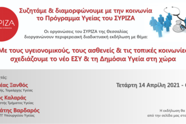 Εκδήλωση των οργανώσεων του ΣΥΡΙΖΑ-ΠΣ Θεσσαλίας για την υγεία