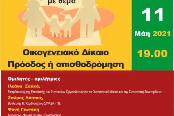 ΣΥΡΙΖΑ – ΠΣ Θεσσαλίας: Διαδικτυακή εκδήλωση με θέμα “Οικογενειακό Δίκαιο – Πρόοδος ή οπισθοδρόμηση;”
