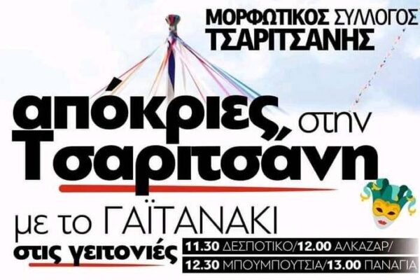 Αποκριάτικες εκδηλώσεις στην Τσαριτσάνη από τον Μορφωτικό Σύλλογο