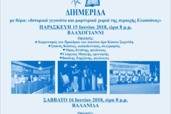 Το Δίκτυο Καλλιτεχνών και Επιστημόνων για την Ανάπτυξη της Επαρχίας Ελασσόνας διοργανώνει σειρά εκδηλώσεων με τον γενικό τίτλο: « ΓΙΟΡΤΕΣ ΛΟΓΟΥ ΚΑΙ …