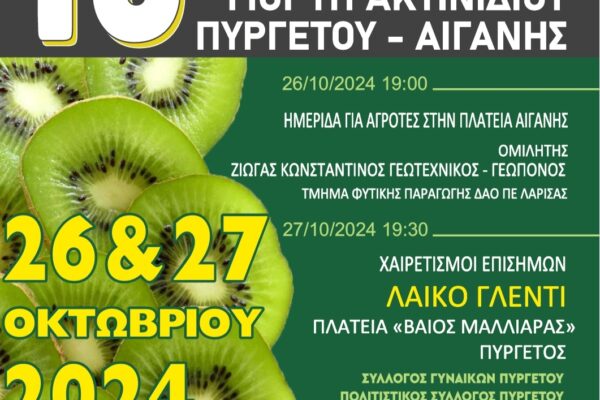 Η 18η Γιορτή Ακτινιδίου ξεκινά την Παρασκευή 26 στην Πλατεία Αιγάνης και συνεχίζεται το Σάββατο 27 Οκτωβρίου, στην Πλατεία “Βάιος …