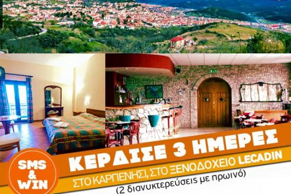 **Super διαγωνισμός** 2 διανυκτερεύσεις με πρωινό στο ξενοδοχείο Lecadin στο Καρπενήσι. Στείλε SMS: Π κενό όνομα επίθετο στο 54260 (0.31 …