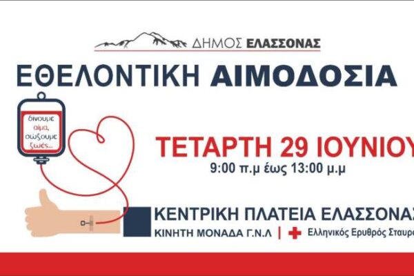 Στην Δημοτική Κοινότητα Κρανέας του Δήμου Ελασσόνας  θα πραγματοποιηθεί   εθελοντική αιμοδοσία την Μεγάλη Τετάρτη 4 ΑΠΡΙΛΙΟΥ 2018  και  Ώρα 9.00π.μ. …