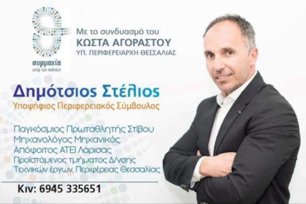 Στις Περιφερειακές εκλογές ψηφίζουμε Δημότσιο Στέλιο, υποψήφιο περιφερεικό σύμβουλο Λάρισας με τον συνδυασμό “Συμμαχία υπέρ των πολιτών” και υποψήφιο Περιφερειάρχη …