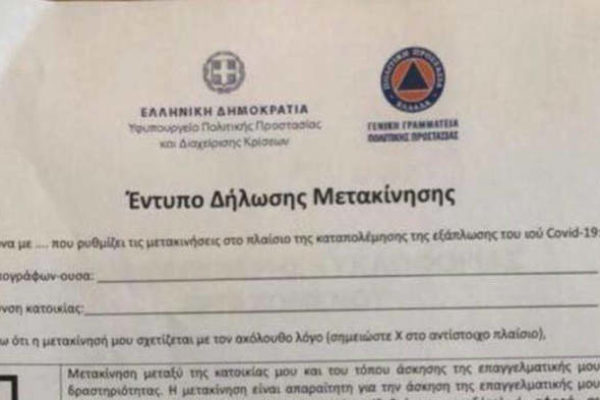 Απαγόρευση κυκλοφορίας: Αυτό θα είναι το έντυπο δήλωσης μετακίνησης