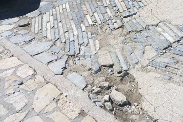 “Το πολυδιαφημιζόμενο έργο η δημοτικής αρχής Γατσα_Καρανίκας” το λιθόστρωτο στον κεντρικό δρόμο Λιβαδίου με τα από ένα χρόνο αυτά είναι …