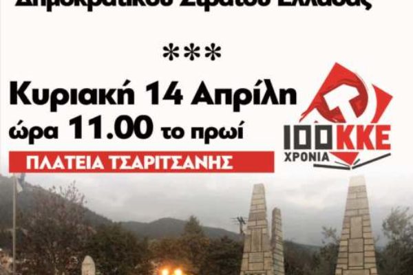 Πολιτική εκδήλωση την Κυριακή 14 Απριλίου στην Τσαριτσάνη