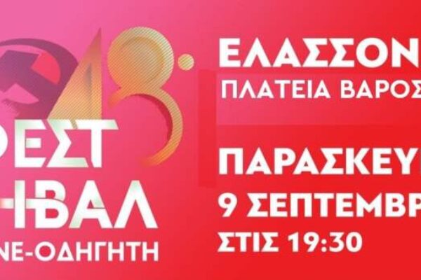 Στην Τσαριτσάνη ταξιδεύει και φέτος το 46ο Φεστιβάλ ΚΝΕ – Οδηγητή, το Σάββατο στις 29 Αυγούστου. Η εκδήλωση θα ξεκινήσει …