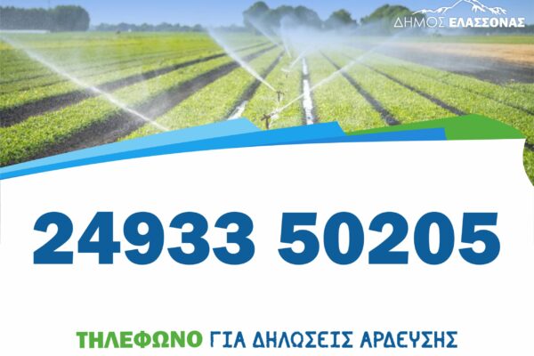 Δήμος Ελασσόνας: «Λήγει την Παρασκευή 15 Μαίου η προθεσμία υποβολής δηλώσεων άρδευσης»