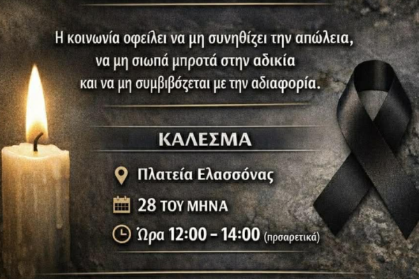 Κείμενο Συμπαράστασης – Εμπορικός Σύλλογος Ελασσόνας Ο Εμπορικός Σύλλογος Ελασσόνας εκφράζει τη βαθιά του συμπαράσταση στις οικογένειες των θυμάτων της …