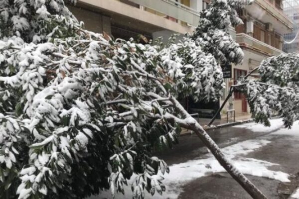 Πτώσεις δέντρων στη Λάρισα – 10 πόντους το χιόνι στην πόλη -μάχη να μείνουν ανοιχτοί οι δρόμοι στα ορεινά