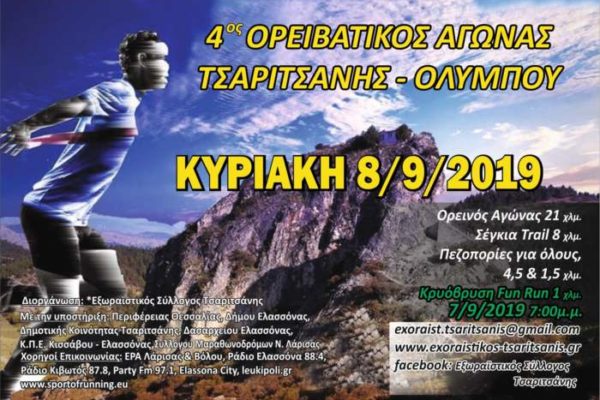 Με εξαιρετική επιτυχία πραγματοποήθηκαν οι δράσεις του 4ου Ορειβατικού αγώνα Τσαριτσάνης-Ολύμπου Το διήμερο 7 και 8 Σεπτεμβρίου 2019 στην Τσαριτσάνη πραγματοποιήθηκε …