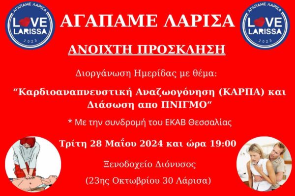 Ημερίδα του ΑΓΑΠΑΜΕ ΛΑΡΙΣΑ για ΚΑΡΠΑ και Πνιγμό