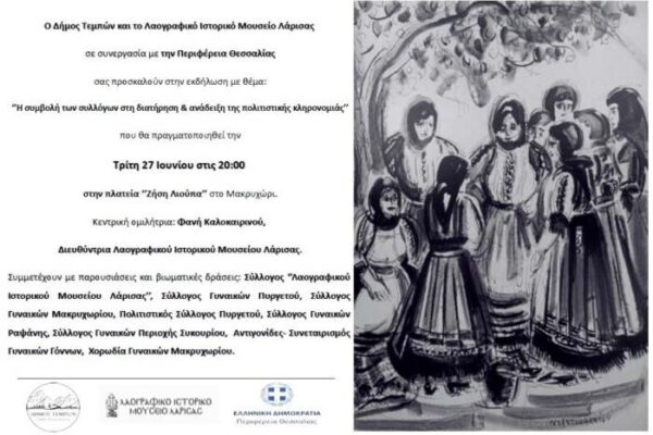 Εκδήλωση με θέμα την «συμβολή των συλλόγων στη διατήρηση και ανάδειξη της πολιτιστικής κληρονομιάς» διοργανώνει ο Δήμος Τεμπών και το …