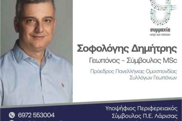 Έχοντας διανύσει 19 χρόνια επαγγελματικής ζωής και 16 χρόνια συνδικαλιστικής δράσης στον Γεωπονικό Σύλλογο Λάρισας και στην Πανελλήνια Ομοσπονδία Συλλόγων …