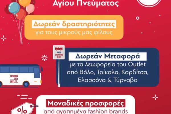 H Δευτέρα του Αγίου Πνεύματος στο Fashion City Outlet θα είναι μια ημέρα γιορτής και ευχάριστων εκπλήξεων για μικρούς και …