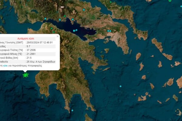 Δύο σεισμοί 5,6 και 5,7 Ρίχτερ ανοιχτά της Ηλείας – Αισθητοί και στην περιοχή της Λάρισας