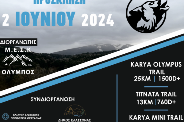 Δήμος Ελασσόνας: Συνδιοργανωτής στον ορεινό αγώνα «Karya Olympus Trail 2024» την Κυριακή