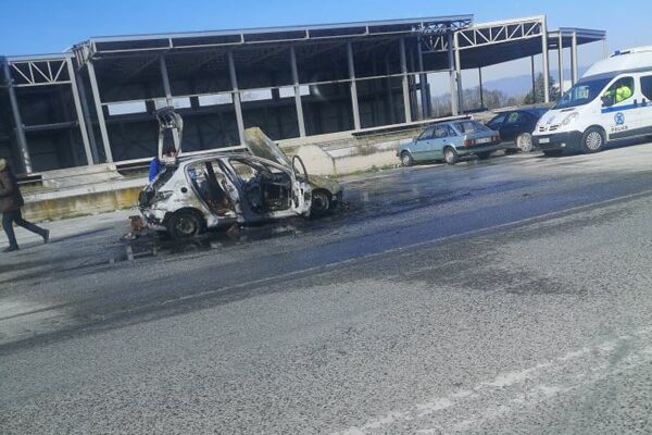 Aυτοκίνητο άρπαξε φωτιά έξω από τη Λάρισα – Ολοκληρωτική η ζημιά