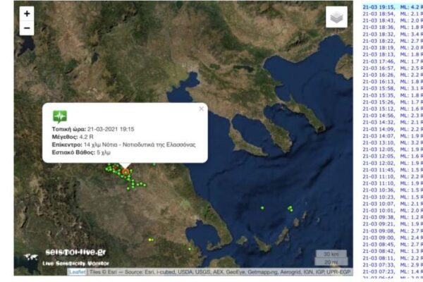 Δύο μετασεισμοί ταρακούνησαν την Ελασσόνα απόγευμα Κυριακής