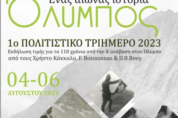 Τριήμερες εκδηλώσεις με τίτλο «Όλυμπος – Ένας αιώνας ιστορία » θα πραγματοποιηθούν στις 4, 5 και 6 Αυγούστου 2023 στην …
