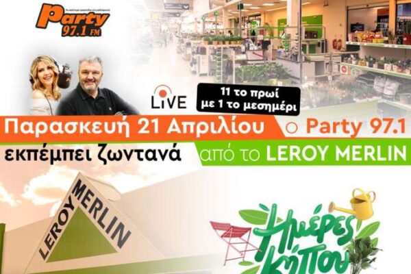 Παρασκευή 21 Απριλίου  ο Party 97,1  εκμπεμπει ζωντανά 11 το πρωι με 1 το μεσημέρι στο Leroy Merlyn Λάρισας στο …
