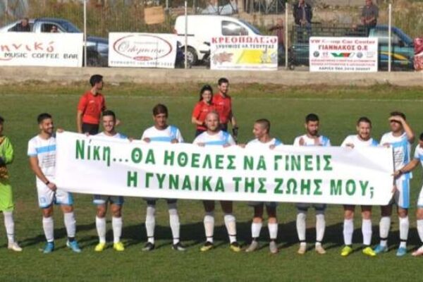 Έκανε πρόταση γάμου στην αγαπημένη του στο γήπεδο στο Δαμάσι με πρωτότυπο τρόπο (φωτό)