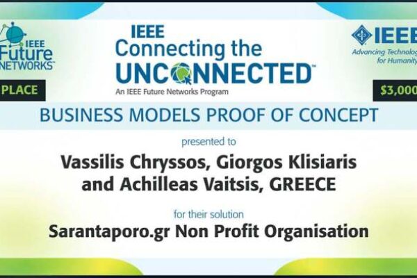 Η ΑΜΚΕ Sarantaporo.gr κατέκτησε τη δεύτερη θέση στον παγκόσμιο διαγωνισμό του οργανισμού ΙΕΕΕ με θέμα: Connecting The Unconnected Challenge, στην κατηγορία “Business Models …