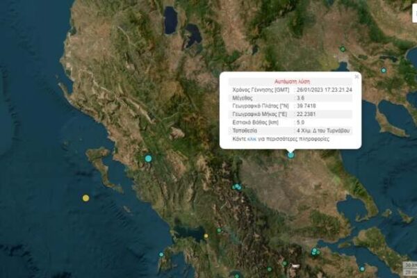 Σεισμική δόνηση «κούνησε» Ελασσόνα, Λάρισα και Τύρναβο