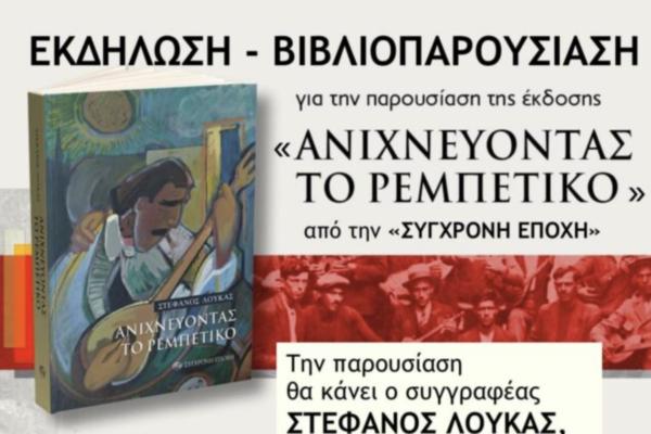 Εκδήλωση – βιβλιοπαρουσίαση για την έκδοση “Ανιχνεύοντας το ρεμπέτικο” στην Ελασσόνα το Σάββατο 20 Ιανουαρίου και ώρα 19.30 μ.μ. στη …