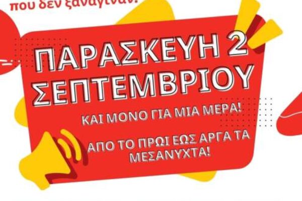 Διήμερο υπερεκπτώσεν ανακοίνωσε ο Εμπορικός Σύλλογος Ελασσόνας στα καταστήματα της αγοράς της Ελασσόνας το ερχόμενο Παρασκευοσάββατο (1 και 2 Σεπτεμβρίου. …